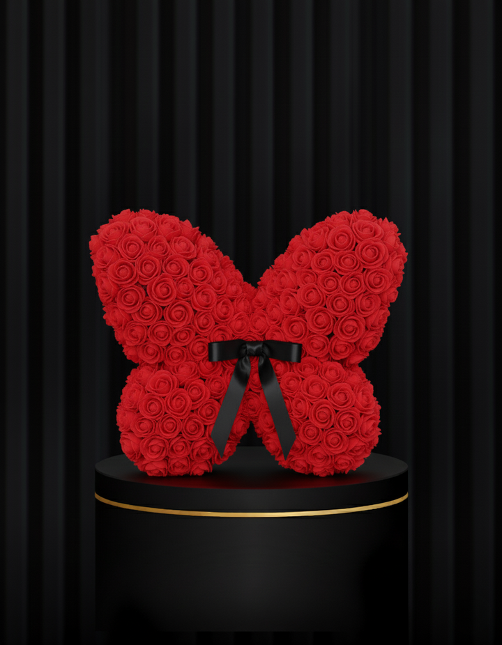 The Luxury Red Rose Butterfly Arrangement is a breathtaking floral creation designed to symbolize transformation, passion, and eternal love. Handcrafted with hundreds of premium Rosa Prima red roses, each bloom is carefully placed to form the elegant shape of a butterfly — a masterpiece of artistry and emotion.